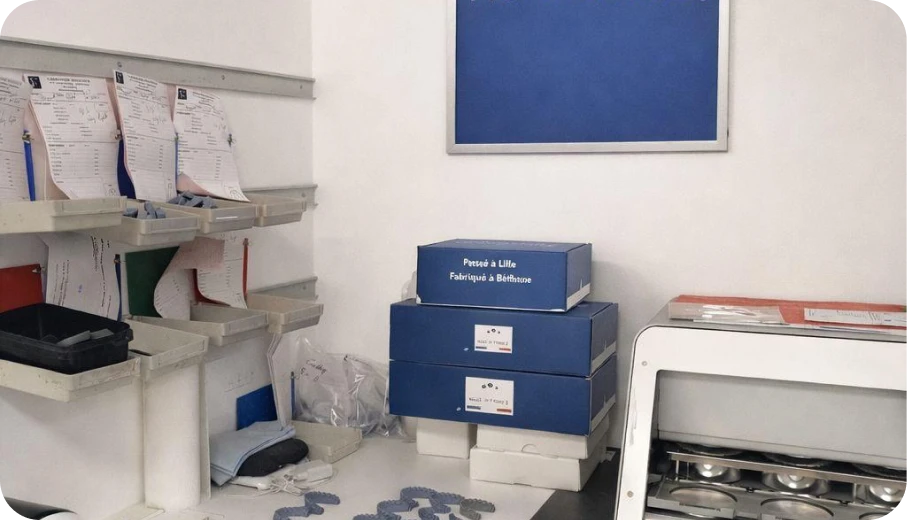 Les aligneurs NovaSmile sont fabriqués en France, au sein d’un laboratoire spécialisé en orthodontie, garantissant rigueur, réactivité et maîtrise des processus.